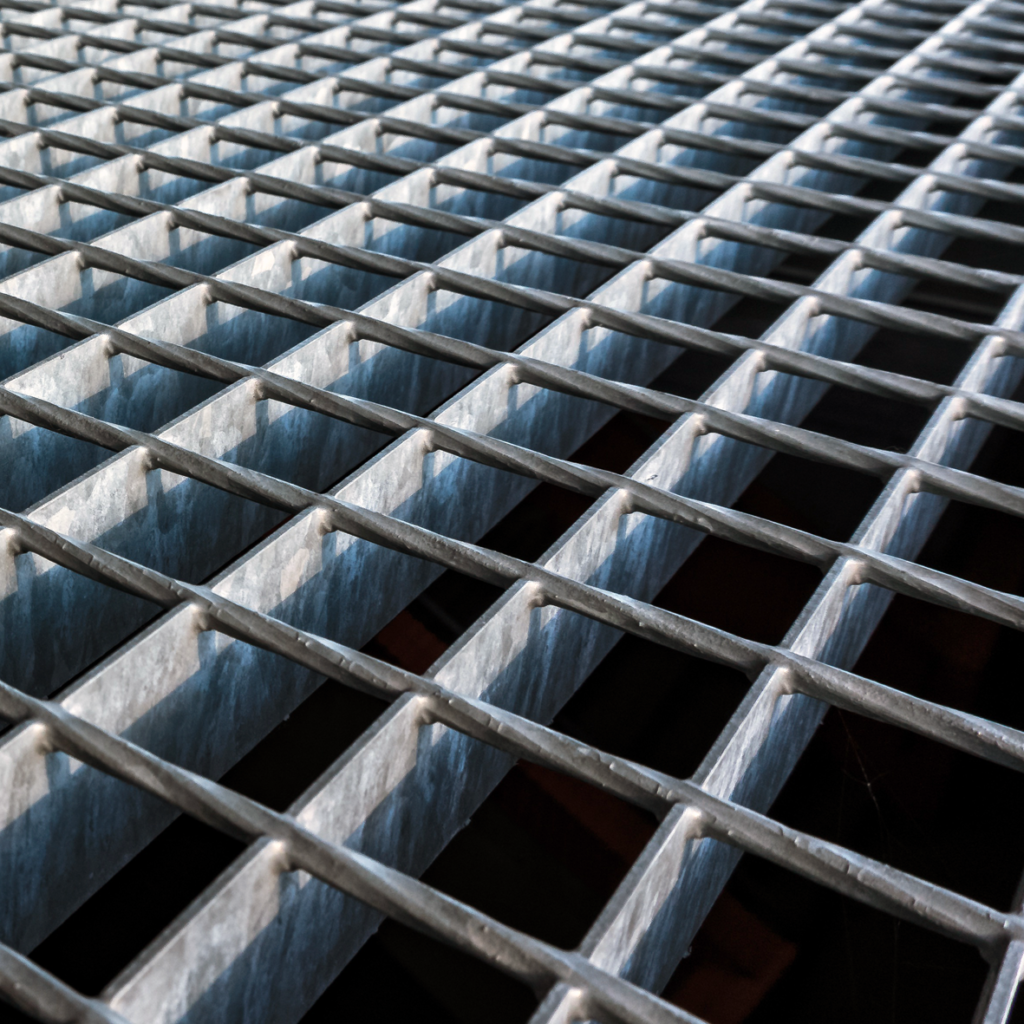 La rejilla electrosoldada tipo Tramex se caracteriza por su estructura robusta, formada por pletinas portantes y varillas separadoras, unidas mediante un proceso de electrosoldado que aplica calor y presión para garantizar una fijación sólida y uniforme.